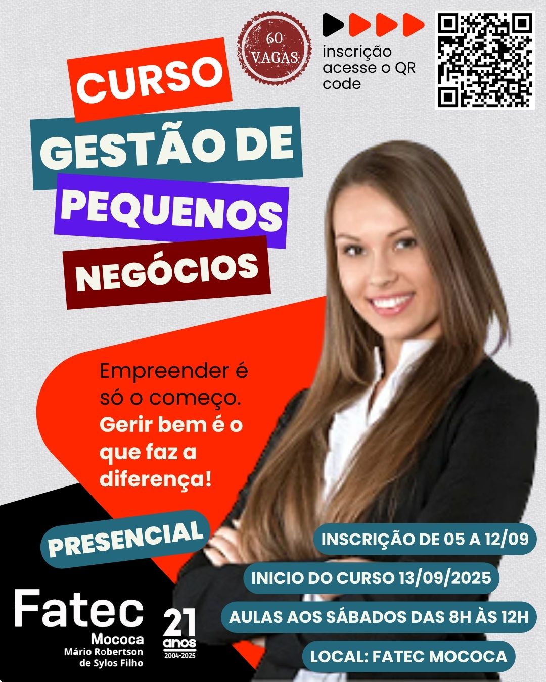 #VemSerFatec #FatecMococa #GestãoDeNegócios #PequenosNegócios #Empreendedorismo #GestãoEmpresarial #CursosPresenciais #EducaçãoTecnológica #Aprendizado #SucessoNosNegócios #FuturoEmpreendedor