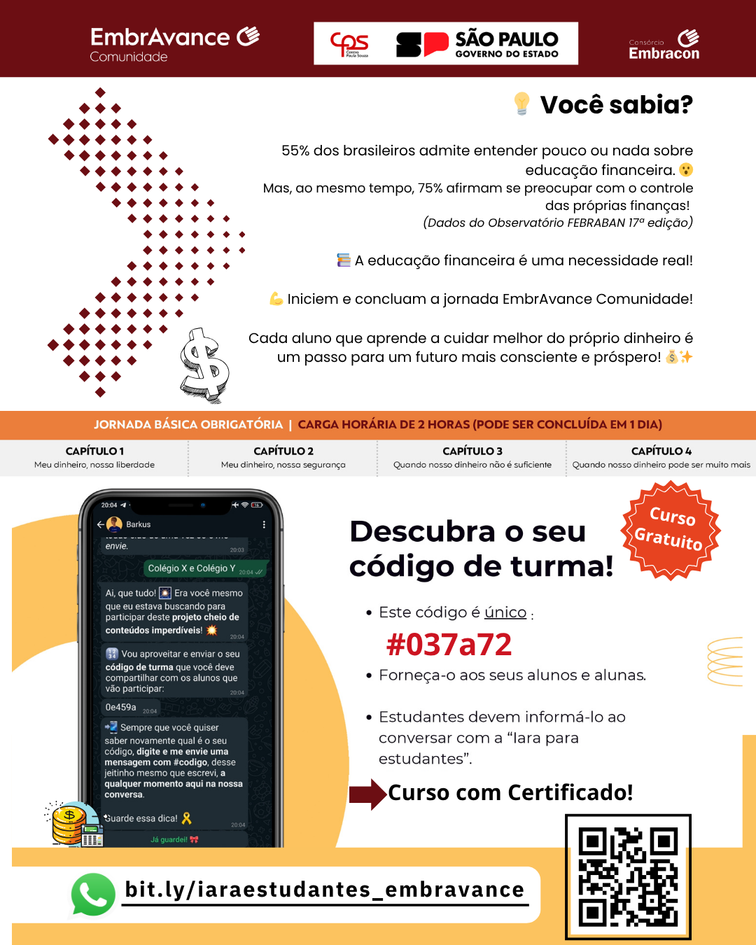 Participe da Jornada EmbrAvance Comunidade 2025, um programa gratuito do Centro Paula Souza, em parceria com a Embracon, que une educação financeira e desenvolvimento de carreira! ![]()