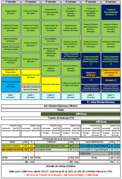 Grade Curricular do Curso Superior de Tecnologia em Sistemas para Internet (Semestral) – Fatec Mococa – R-09